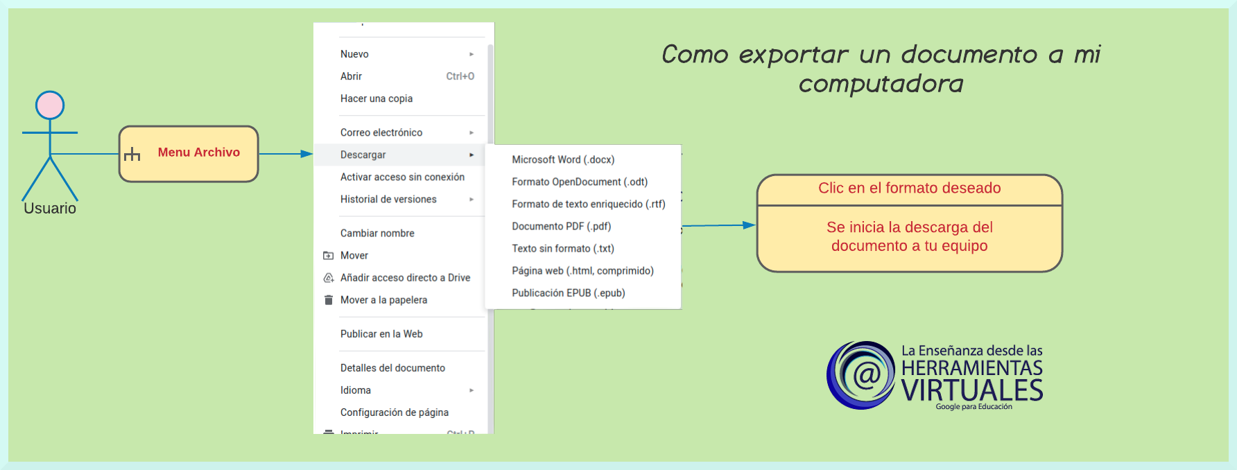 Este es el procedimiento para exportar un documento de Google Docs a mi computadora en el formato seleccionado.
